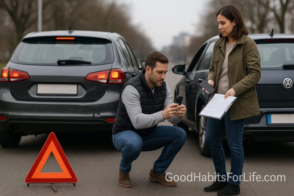 A minor crash usually means low-speed contact with limited damage (e.g., bumper, fender, lights) and no obvious injury. Even “minor” knocks can escalate—traffic hazards, hidden injuries (whiplash), or disputes later. A consistent, evidence-based process protects health, legal requirements, and insurance outcomes. Research shows attention under stress narrows; lists and mnemonics reduce errors and make recall easier. Following the steps below gives you the facts your insurer (and, if needed, police) will rely on.