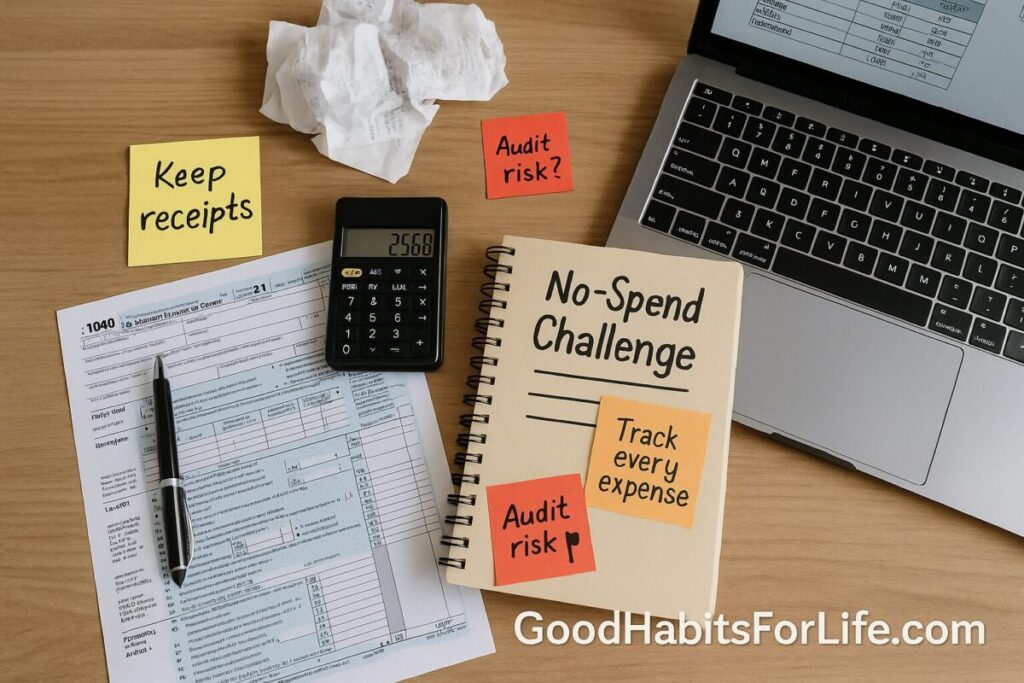 Good Habits angle: The same behaviors that make your No-Spend Challenge work (clear rules, tracking, documentation) also reduce audit risk. You’ll spend less and be ready to substantiate any claims at tax time.