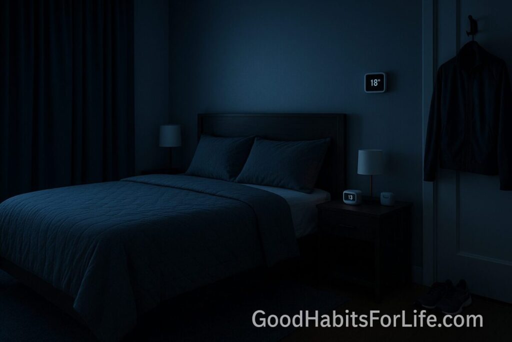 Proof it matters. AASM guidance explicitly recommends a cool, quiet, relaxing bedroom and limiting evening light. Sleep Education