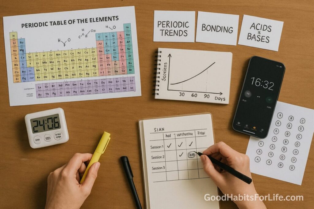 What: Spaced practice means reviewing chemistry concepts multiple times with increasing gaps, using active recall and brief tests. It replaces marathon rereads with short, scheduled sessions that grow further apart. Decades of research show spaced practice and practice testing are among the most effective learning techniques for durable retention and transfer. SAGE Journals
