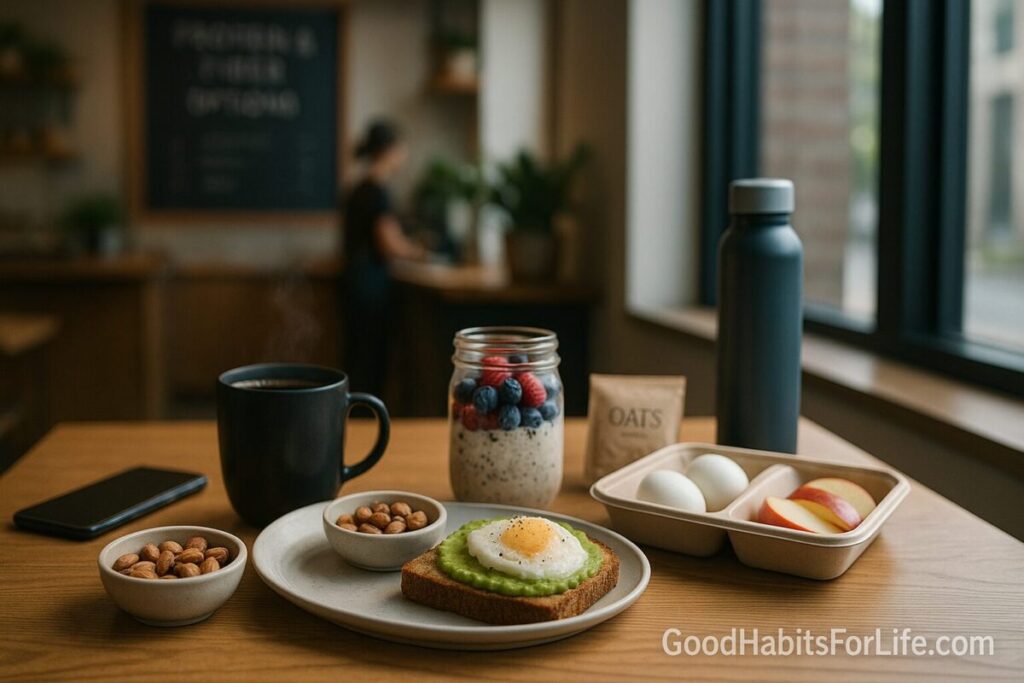 “Americano and a protein box (eggs/cheese/nuts) — skip the pastry.” (20–30 g protein)
