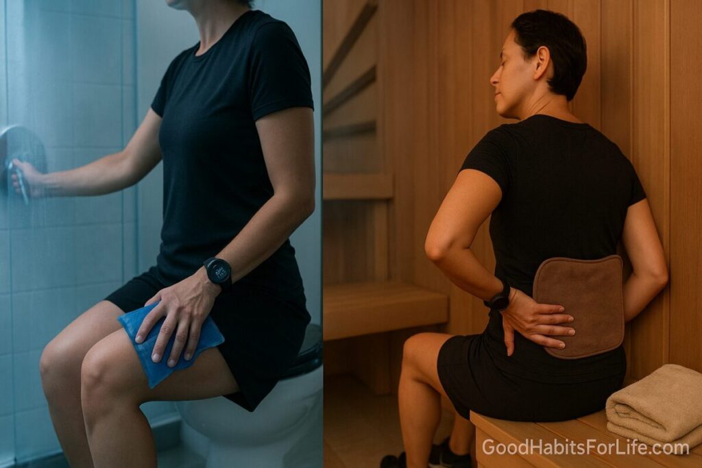 Cold (ice packs, cold showers, cold-water immersion) and heat (warm packs, sauna, warm bath/shower) are simple levers to change circulation, nerve signaling, and tissue feel.