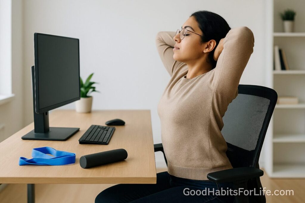 How: Timer every 30 min → stand/walk 2 min → 1 Posture Reset or 10 band pulls.