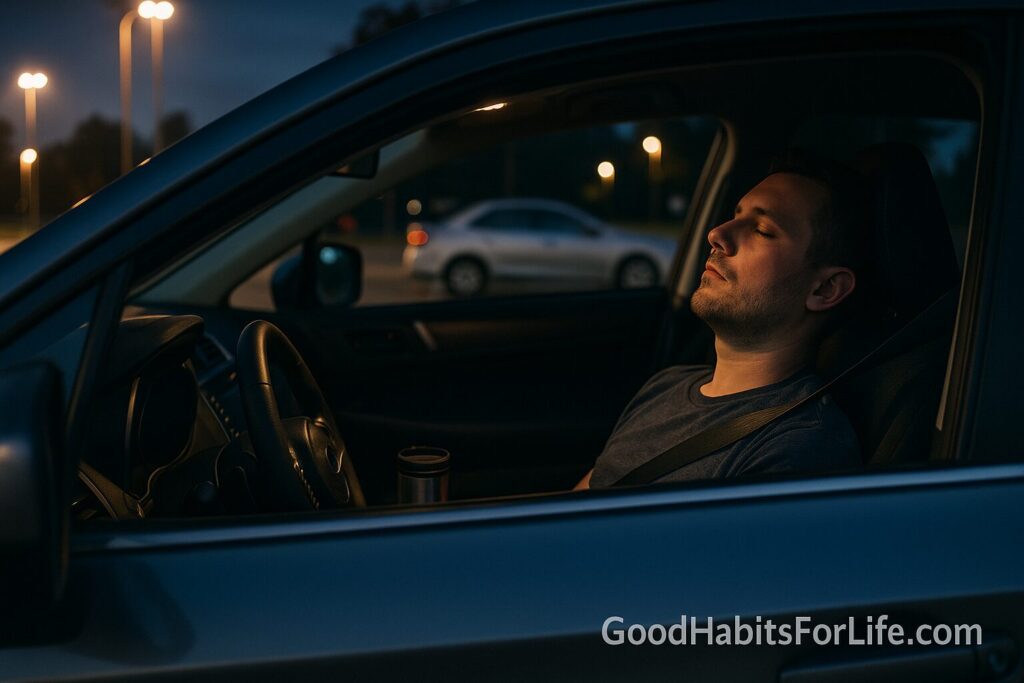 • Self-talk trigger: “I missed that exit and my eyes are heavy—I’m stopping now.”