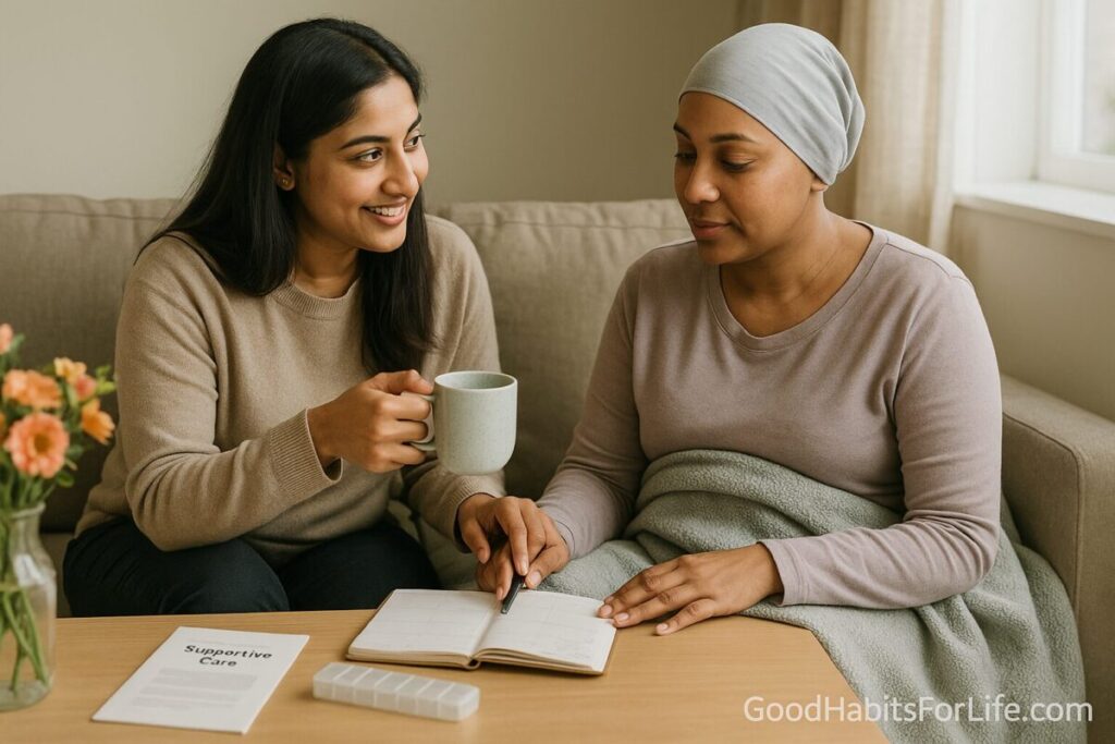 “Supportive (palliative) care” focuses on reducing symptoms and stress at any stage of serious illness (not just end of life). Knowing this helps you normalize early referrals and practical help. World Health OrganizationCancer.gov