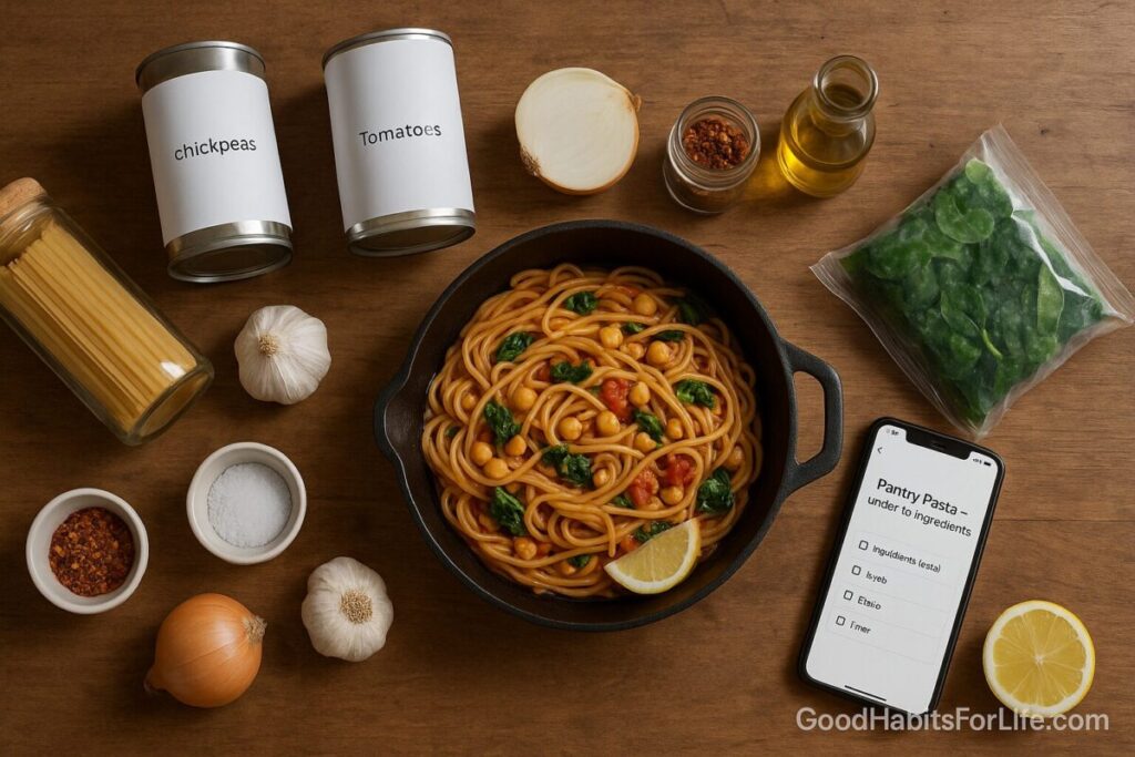 Definition: A pantry meal is a complete dish you can make mostly from shelf-stable or long-life items (canned, dried, jarred, frozen), plus 1–2 fresh add-ins. “Under 10 ingredients” excludes water, salt, pepper, and optional garnish.