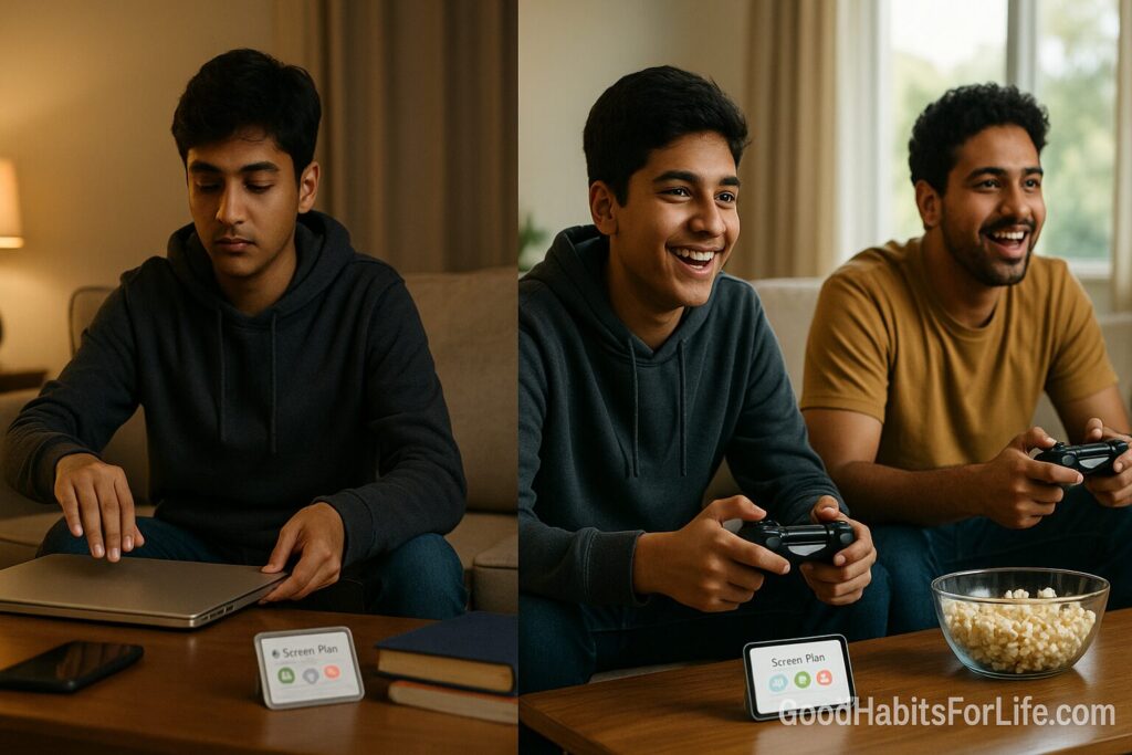 A sensible split sets one set of screen rules for weekdays (school/work, earlier bedtimes) and a more relaxed set for weekends (later wake times, social plans). Instead of chasing a single magic number, you protect what matters most on weekdays—sleep, school/work focus, movement—and give yourself buffer space on weekends for connection, gaming, movies, or creative projects.